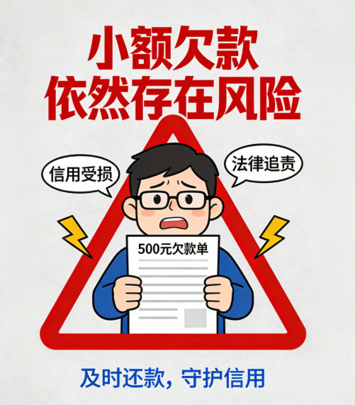 在日常生活和商业往来中,即使是小额欠款,也可能带来不小的影响。很多人容易抱有侥幸心理,认为金额不大就无需偿还,但这种想法可能带来意想不到的后果。欠款不论大小,都···